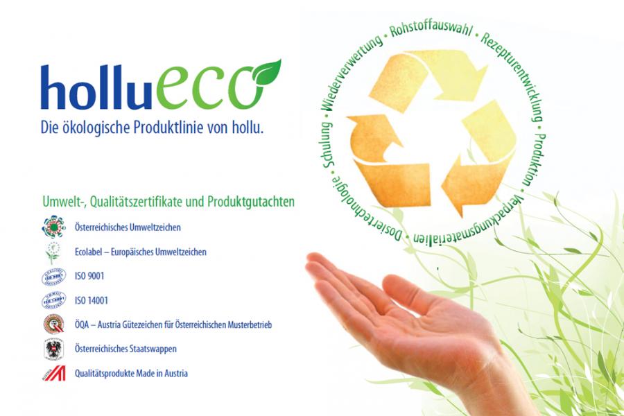 Dabei berücksichtigt HOLLU auch den sorgsamen Umgang mit Energie und Wasser. Dieser verantwortungsvolle Umgang mit Umwelt und Ressourcen ist durch die Zertifizierungen ISO 9001 Qualitätsmanagement und ISO 14001 Umweltmanagement verankert und belegt.